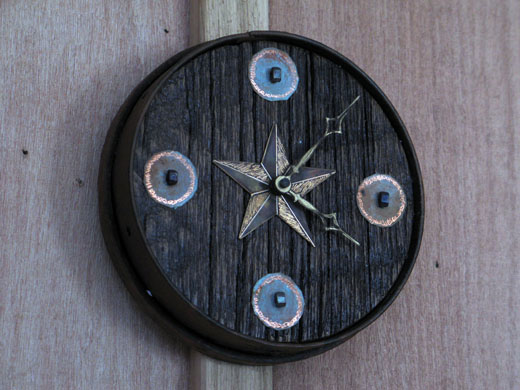 CLOCKS Our clocks are made from re-enforcement rings of wagon wheel hubs. The centers are created from reclaimed barn wood or fins from wind mills. Each clock is unquie, no two are ever alike.