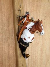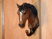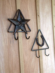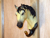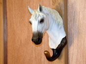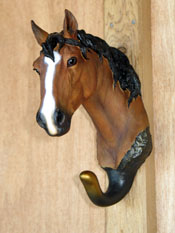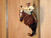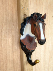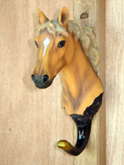 Our horse head, cowboy, and indian hat & coat hooks are great accent pieces. They also make great curtin rod holders. The horses come in several colors; grey, pinto, bay, black, buckskin and palamino. All the hooks are approximately 7" long.