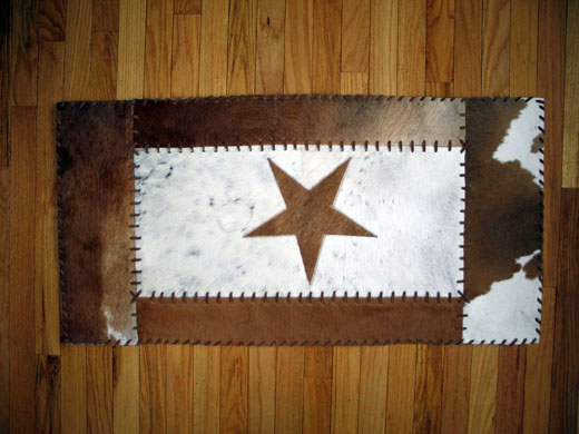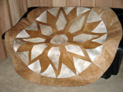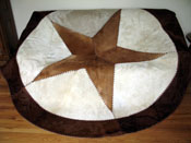 Our cowhide rugs with a star pattern make a beautiful accent piece for any room or hung on a wall. These rugs come in many different colors and are about 6 1/2' in diameter.